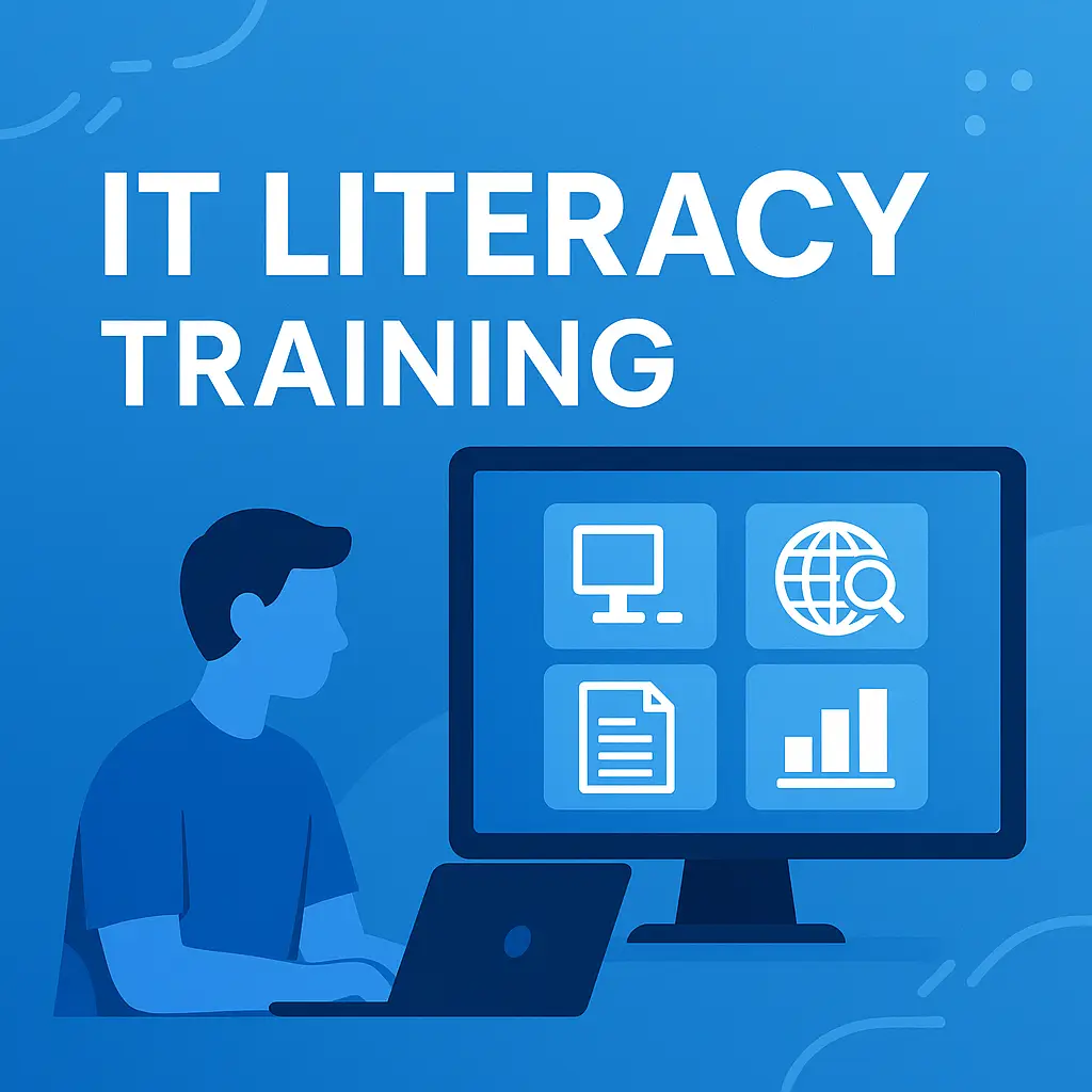 The Basic IT Literacy Training program is designed to introduce learners to essential computer skills required for personal, academic, and workplace success. This course provides a strong foundation in understanding computer hardware and software, operating systems, internet usage, productivity tools, and safe computing practices. Through hands-on, practical activities, participants will learn how to confidently operate a computer, manage files, browse the internet, communicate electronically, and use common office applications such as word processing, spreadsheets, and presentations.